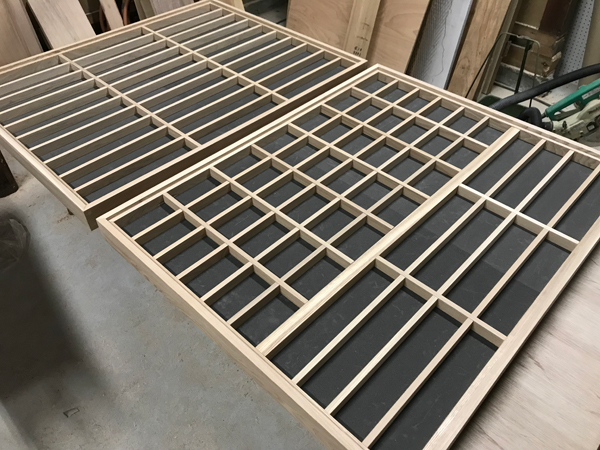 次に間仕切りです。こちらは十字相欠き継ぎに加工し組み立てます。