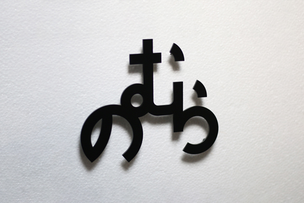 直線と円で構成した ひらがな文字のアイアン表札 です。黒マットのアイアンの無骨な質感とひらがなの柔らかさの対比が面白いバランスの表札です。案件ごとに一文字ずつデザインを起こすので文字の大きさを変えて強弱を付けたりレイアウトの変更も可能です。(※文字の書体を変更する場合は下記のデザイン変更に該当します)文字裏のボルトで壁面に差し込んで設置できるので、表札以外にも店舗の看板やサインとしてもおすすめです。